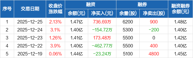 智立方:融资净买入736.69万元,融资余额1.47亿元(12-25)
