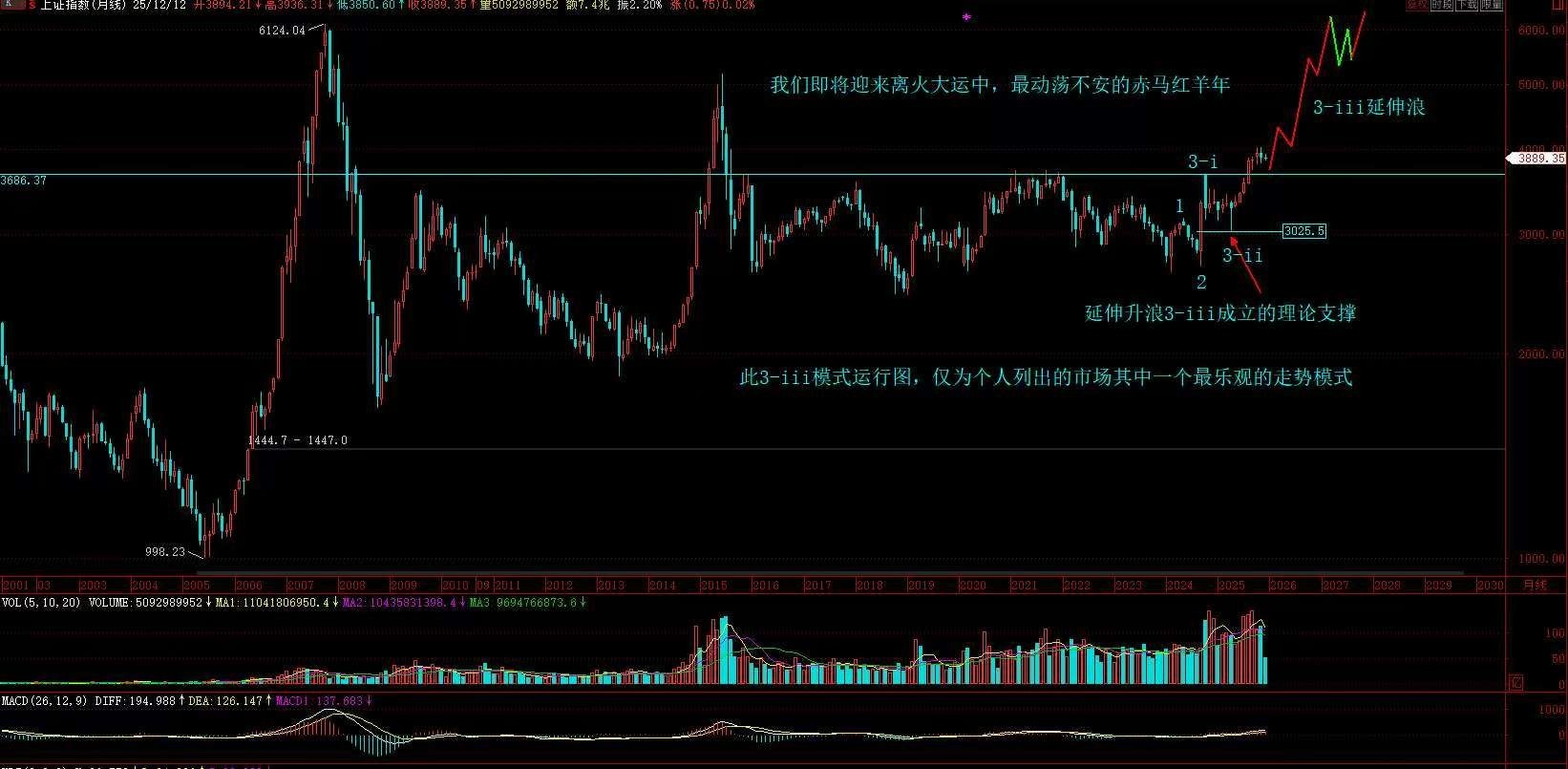 2025年A股在政策、估值、盈利、资金四重支撑下走出了牛市行情,但A股市场细分赛道的分化却愈发明显。2026年作为“十五五”规划开局之年,经济转型深化与政策发力预期叠加,在这样的背景下,2026年的投资机会如何?从技术分析的角度来看,2026年的A股市场在私募大佬眼中又会有怎样的表现?近日,市场资深分析人士刘宁川从技术分析的角度对2026年的市场作出了他个人的推演。