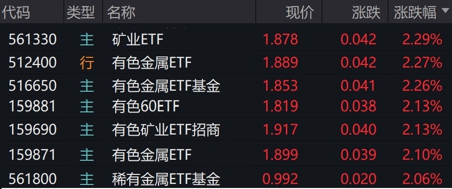 有色金属概念股走强,矿业、有色相关ETF涨超2%