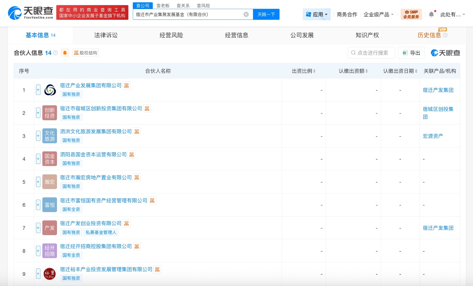 每经AI快讯,天眼查App显示,近日,宿迁市产业集聚发展基金(有限合伙)成立,执行事务合伙人为宿迁产发创业投资有限公司,出资额50亿元人民币,经营范围为以私募基金从事股权投资、投资管理、资产管理等活动。合伙人信息显示,该基金由宿迁产业发展集团有限公司、宿迁市宿城区创新投资集团有限公司、泗洪文化旅游发展集团有限公司等共同出资。