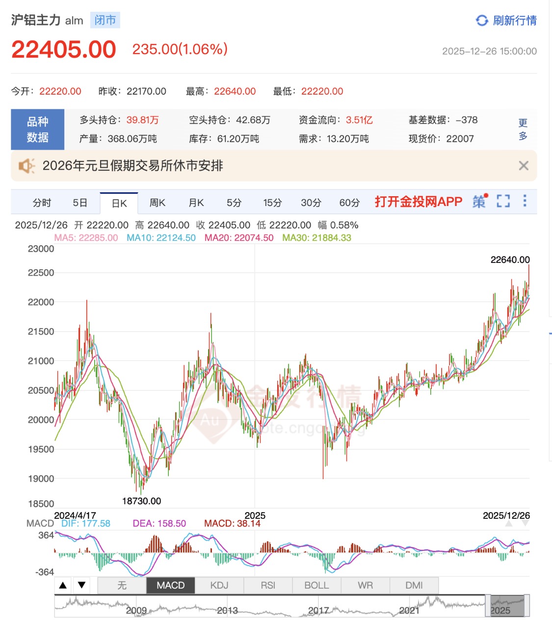 另一方面,受供应预期扰动及地缘政治等因素影响,金铜等有色金属价格铝创历史新高,也对铝价形成较强带动。