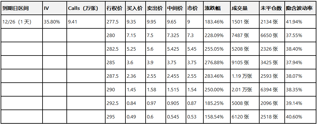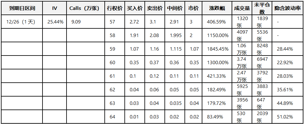 今日到期的纳斯达克100指数期权成交量分布:Call单峰值为25800,Put单峰值在25500点。