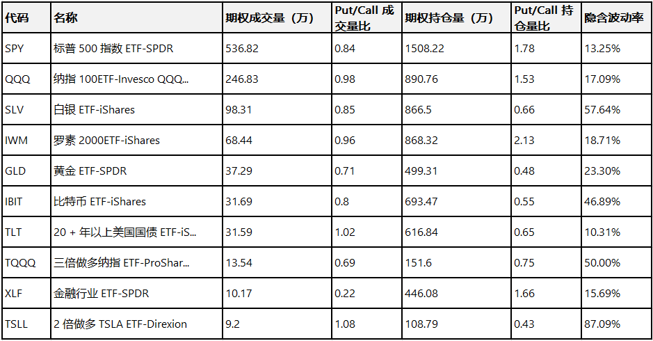 三、美股ETF期权成交榜美股ETF期权成交量排行榜前十