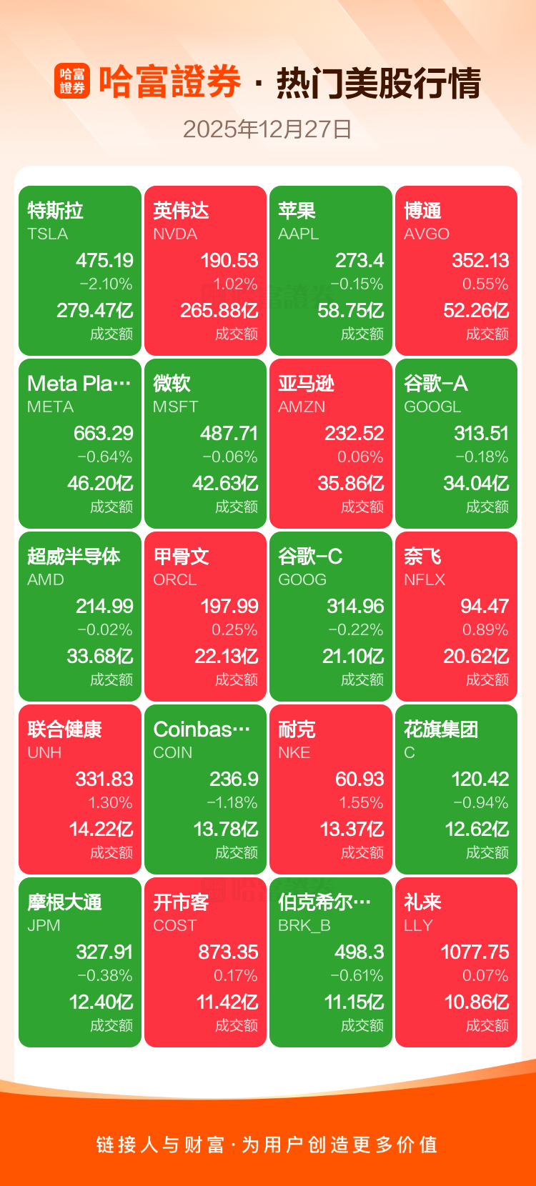 特斯拉跌2.10%,英伟达涨1.02%,苹果跌0.15%,博通涨0.55%,Meta Platforms Inc-A跌0.64%,微软跌0.06%,亚马逊涨0.06%,谷歌-A跌0.18%,超威半导体跌0.02%,甲骨文涨0.25%。