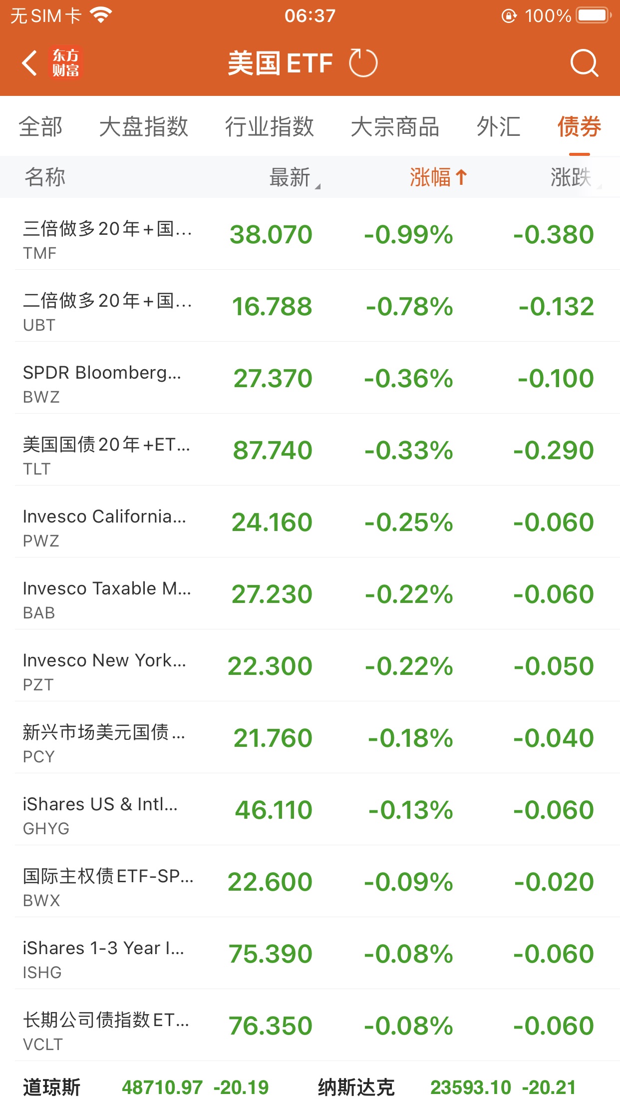 20+年以上美国国债ETF-iShares(TLT.US) 跌0.33%,成交额22.08亿美元。