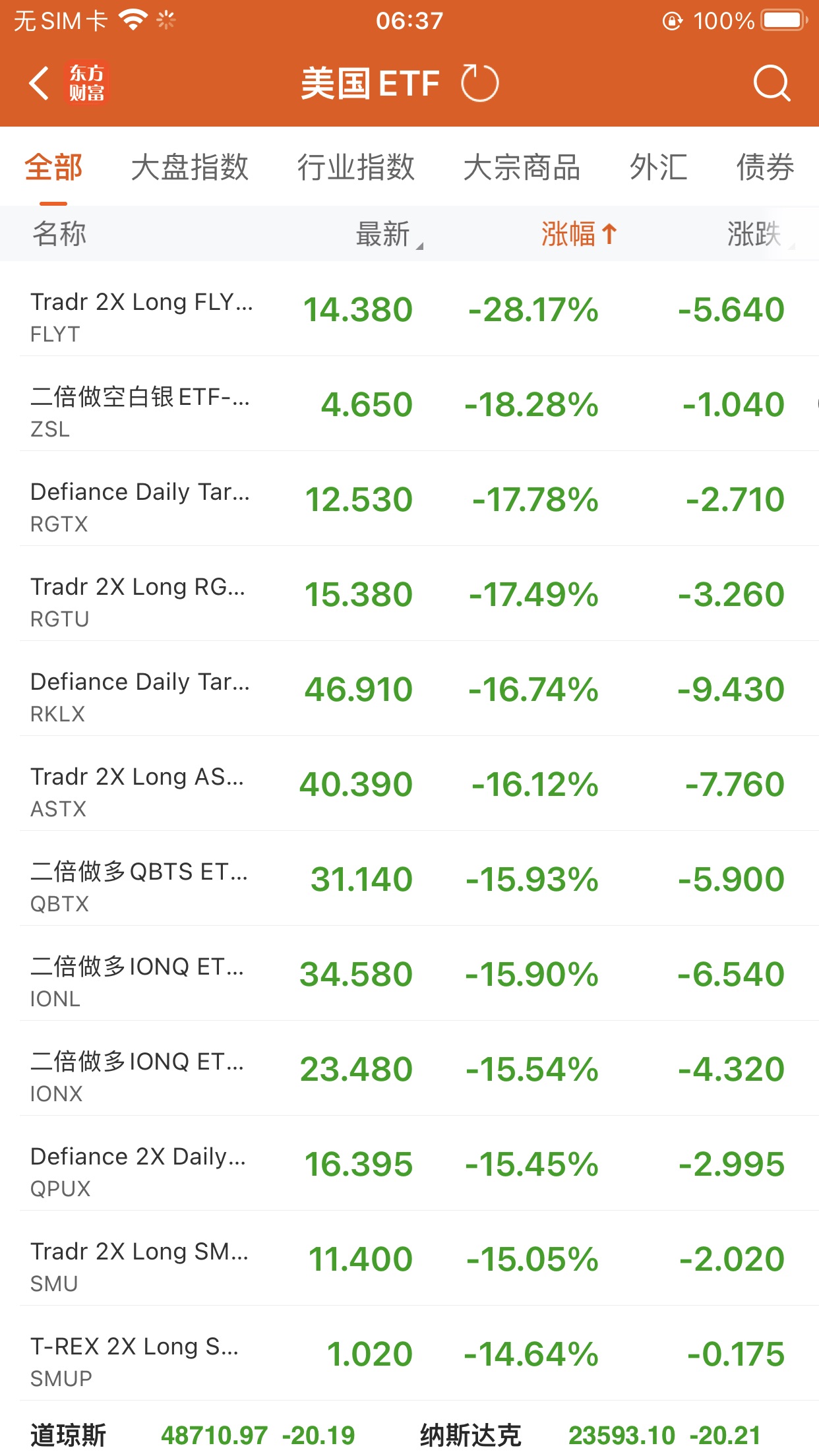 2倍做多FLY ETF-Tradr(FLYT.US) 跌28.17%,成交额95.03万美元。