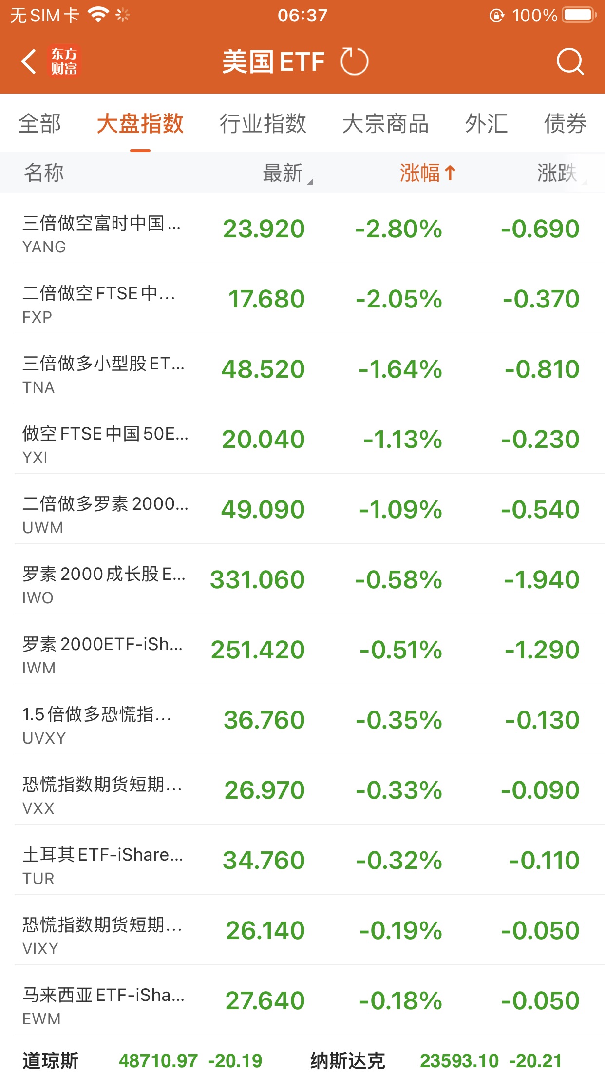 二倍做空FTSE中国50指数ETF(FXP.US) 跌2.05%,成交额8.73万美元。