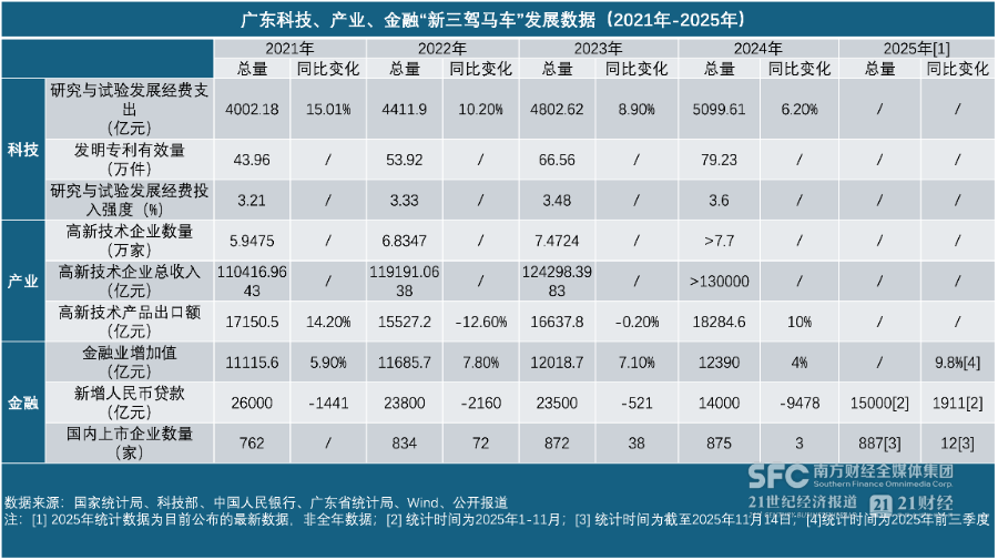 从近年的分项数据中可以明显看见,广东将更多目光投向科技及其背后牵引的高新技术产业,并依靠金融创新进一步加快各类资源配置效率。