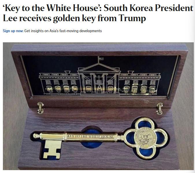 报道称,姜勋植还表示,特朗普为特别嘉宾亲自设计了该钥匙,获赠该礼物的有以色列总理内塔尼亚胡、日本前首相麻生太郞、特斯拉首席执行官马斯克等。