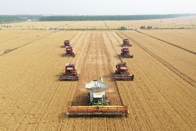 麦收期间,为应对不利天气,商丘提前调配收割机械,投入2.7万台联合收割机,从5月30日大面积收割至6月7日,仅用9天收割900多万亩小麦,实现夏粮播种面积、单产、总产“三增”。