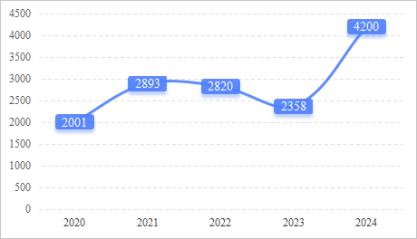 2020-2024年间进口食品不合格批次。制图/江南大学