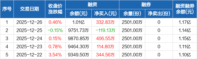 创业板成长ETF:融资净买入332.83万元,融资余额1.01亿元(12-26)