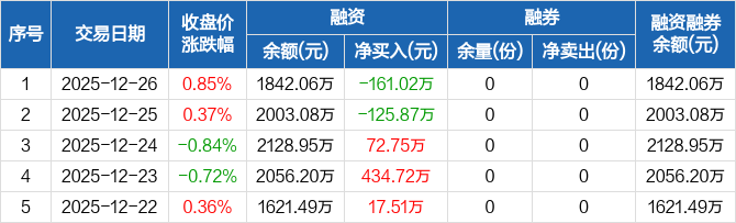 农业ETF:融资净偿还161.02万元,融资余额1842.06万元(12-26)