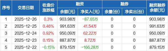 建材ETF:融资净偿还87.65万元,融资余额903.98万元(12-26)