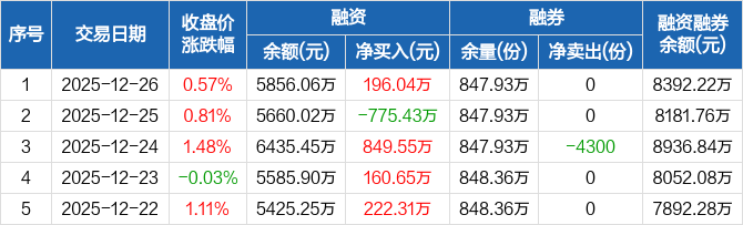 中证500ETF:融资净买入196.04万元,融资余额5856.06万元(12-26)