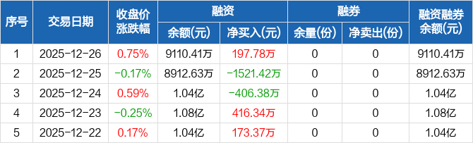 自由现金流ETF:融资净买入197.78万元,融资余额9110.41万元(12-26)
