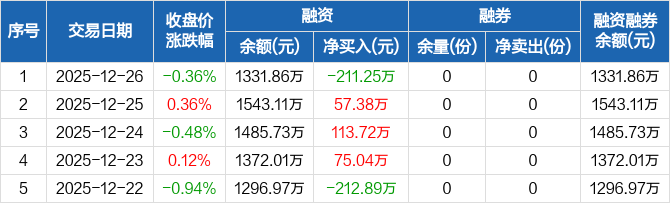 港股创新药ETF鹏华:融资净偿还211.25万元,融资余额1331.86万元(12-26)