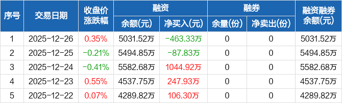 恒生红利低波ETF:融资净偿还463.33万元,融资余额5031.52万元(12-26)