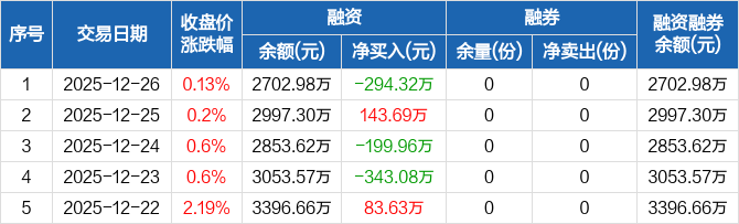 创50ETF:融资净偿还294.32万元,融资余额2702.98万元(12-26)