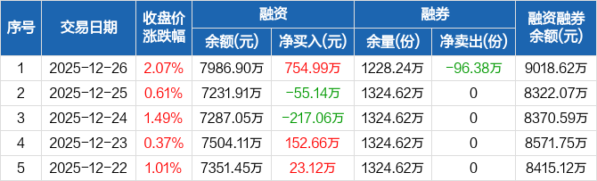 光伏ETF:融资净买入754.99万元,融资余额7986.9万元(12-26)