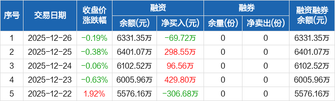 纳斯达克100指数ETF:融资净偿还69.72万元,融资余额6331.35万元(12-26)