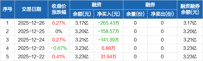 恒生科技指数ETF:连续3日融资净偿还累计565.38万元(12-26)
