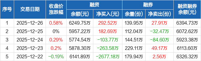 电力ETF:融资净买入292.52万元,融资余额6249.75万元(12-26)