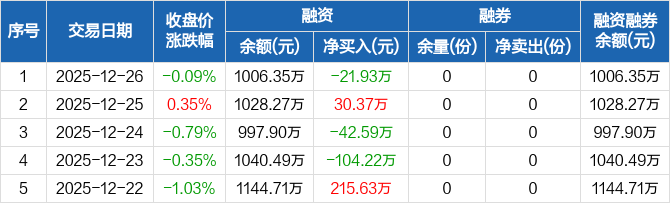 恒生生物科技ETF:融资净偿还21.93万元,融资余额1006.35万元(12-26)