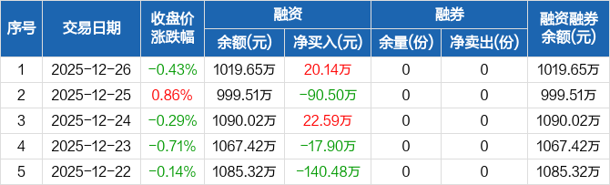 食品饮料ETF天弘:融资净买入20.14万元,融资余额1019.65万元(12-26)