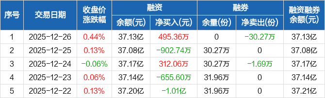 恒生ETF:融资净买入495.36万元,融资余额37.13亿元(12-26)