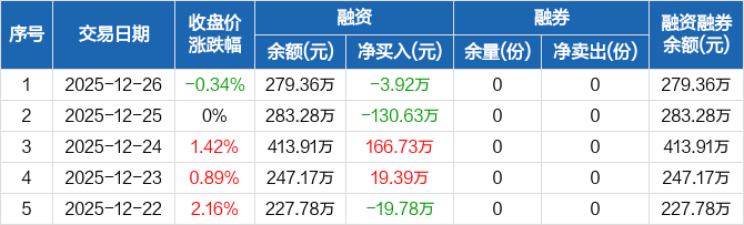 芯片ETF天弘:融资净偿还3.92万元,融资余额279.36万元(12-26)
