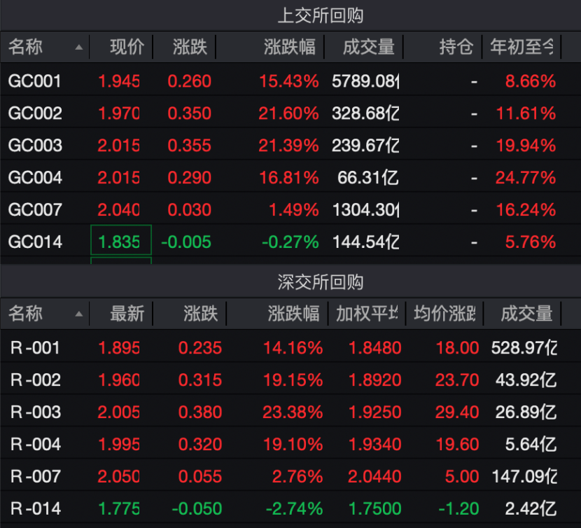 沪深交易所多个期限国债逆回购收益率大涨