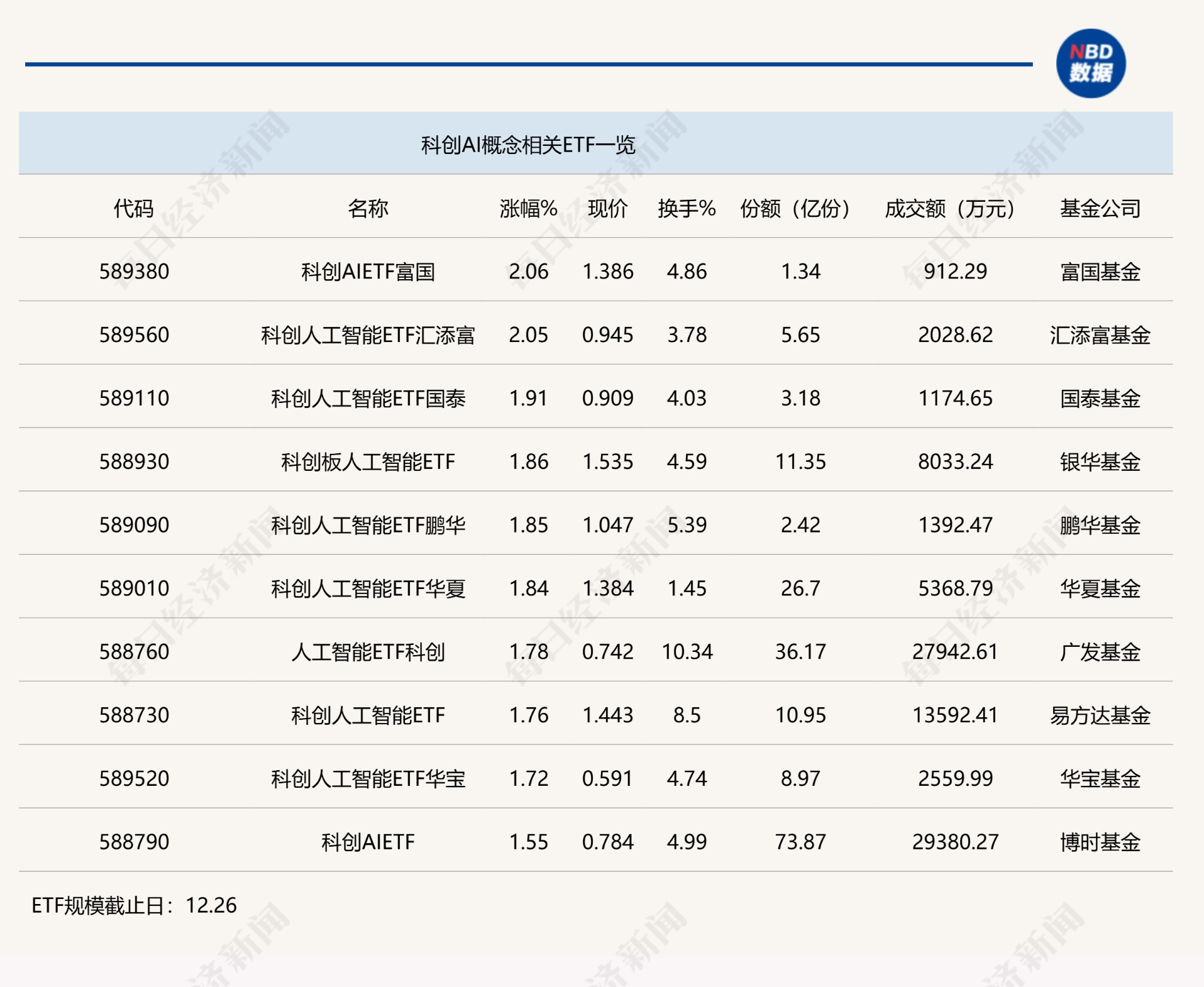 行业ETF风向标丨多行业ETF交投活跃,两只科创人工智能ETF半日涨幅超2%
