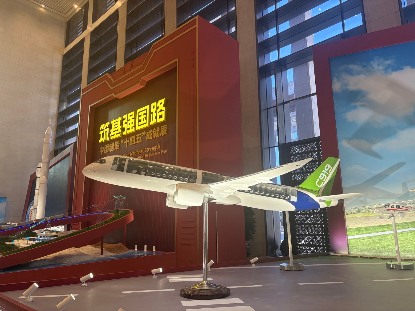 国家博物馆艺术长廊展区展出的C919大飞机模型每经记者张蕊摄