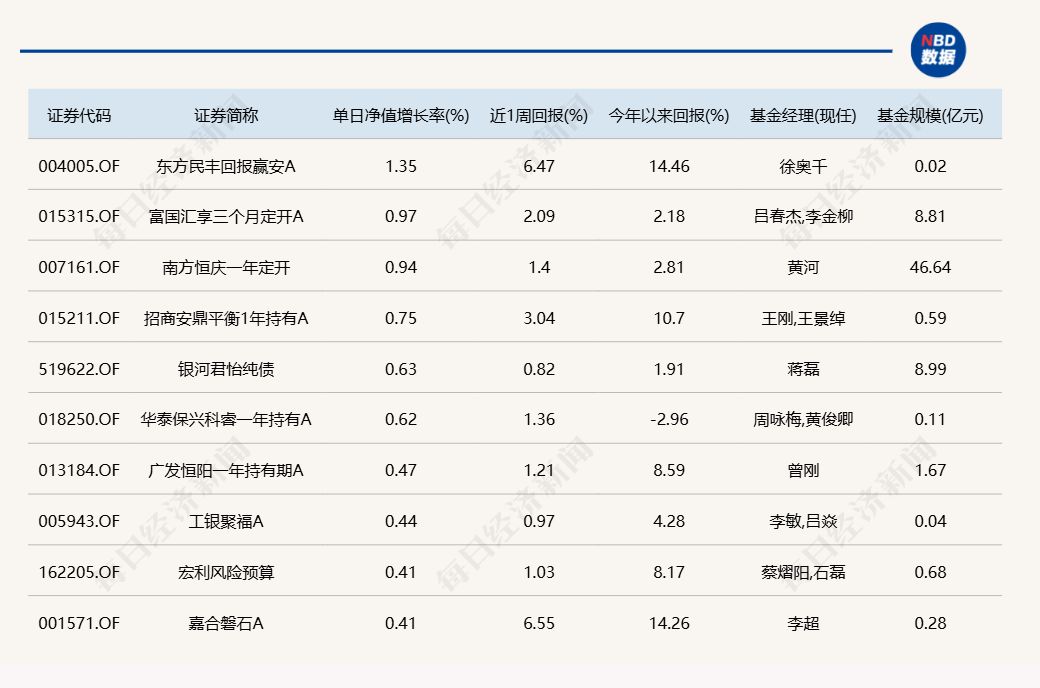3.单日债基涨跌幅榜