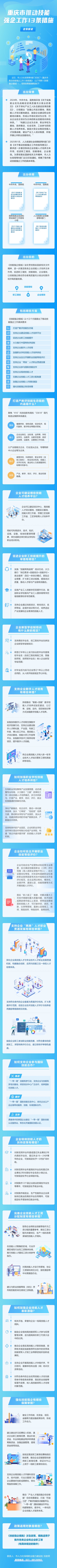 近日,重庆市人力社保局等8部门印发《重庆市推动技能强企工作13条措施》(以下简称《技能强企措施》),围绕打造技能生态链、强化平台支撑、完善激励机制等方面推出13条具体举措,进一步激发企业技能人才培养主体作用,促进职工增技、技能增收、企业增效,以技能强企推动劳动者高质量充分就业和经济高质量发展。