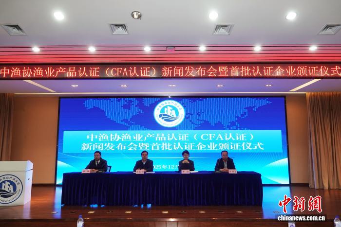 中新网北京12月29日电 (记者孙自法)中国渔业协会(中渔协)渔业产品认证(CFA认证)体系12月29日在北京发布,这一填补中国渔业行业专业化认证关键空白、实现“从池塘到餐桌”全链条质量管控的重要举措正式推出,标志着中国渔业在标准化建设与质量安全保障领域迈出关键一步。