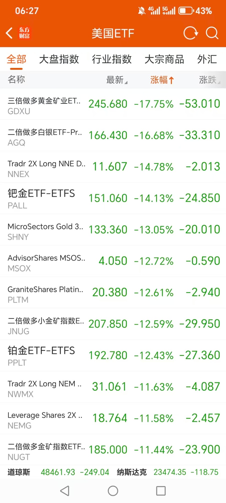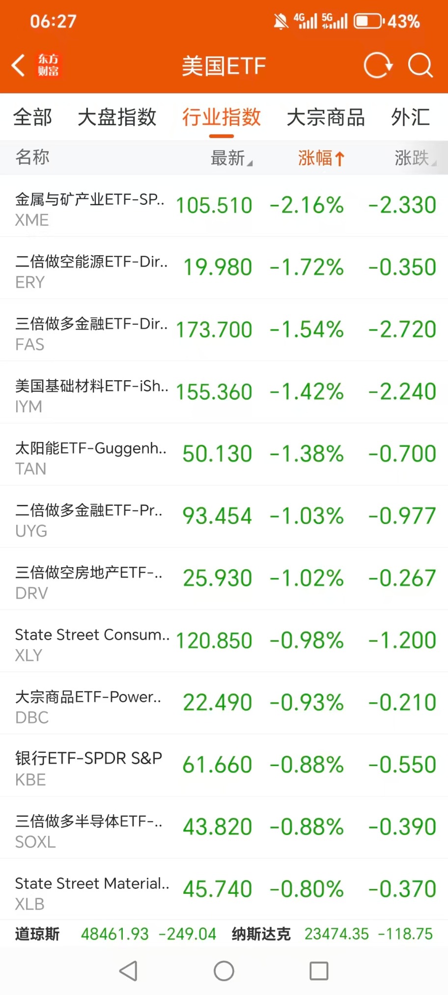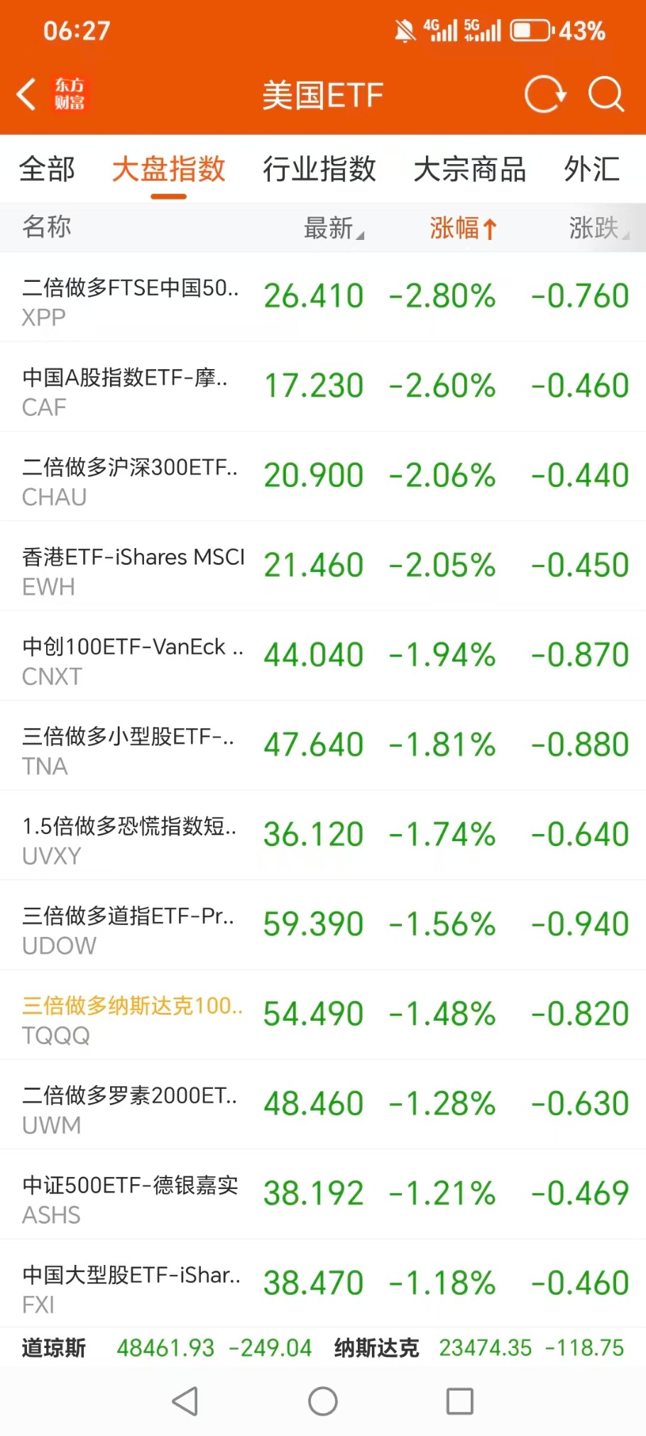 美股大型指数ETF跌幅榜Top5