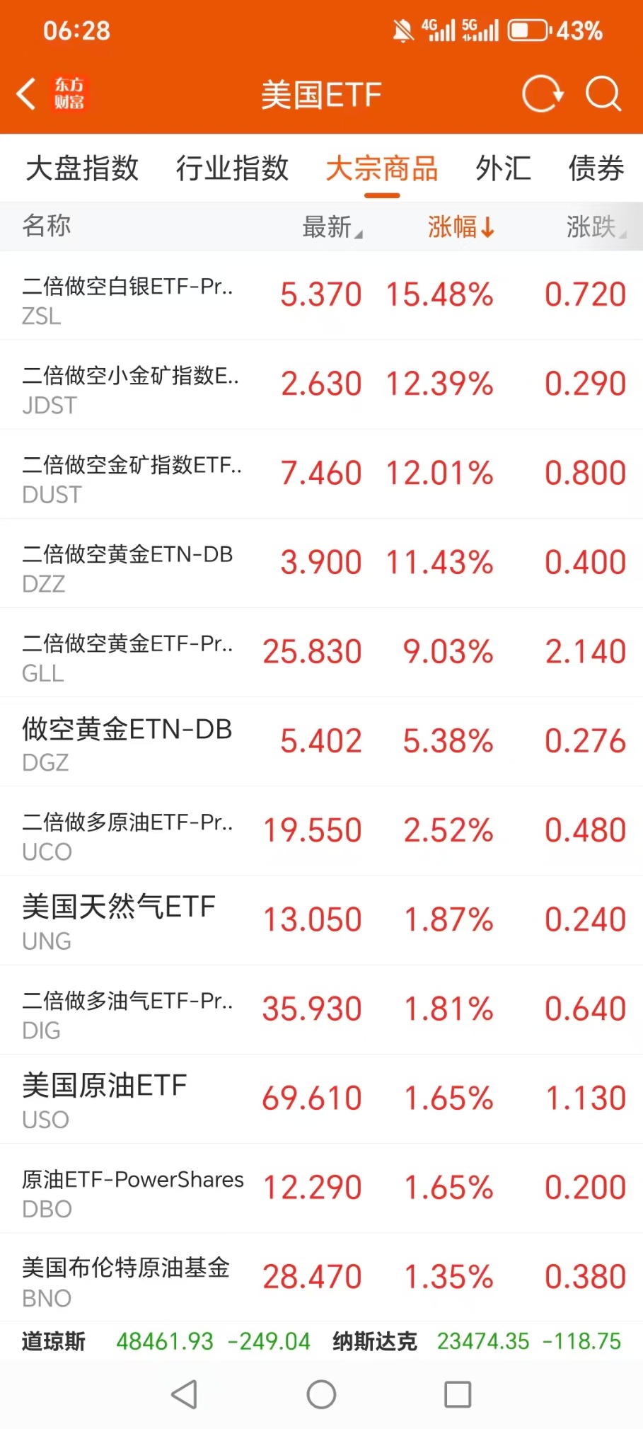 大宗商品型ETF升幅榜Top5