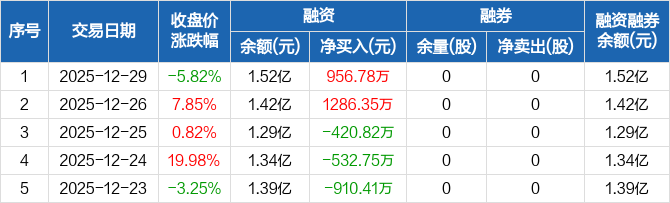 瑞华泰:融资余额1.52亿元,创近一年新高(12-29)