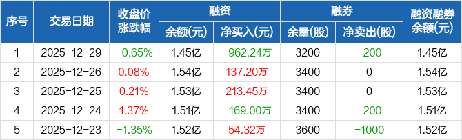 普元信息:融资净偿还962.24万元,融资余额1.45亿元(12-29)