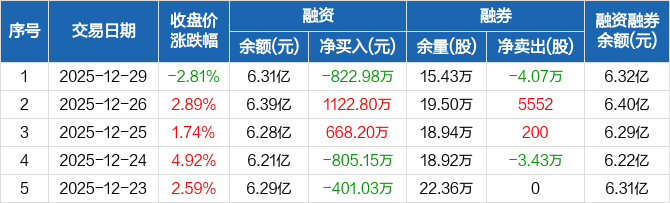 五矿新能:融资净偿还822.98万元,融资余额6.31亿元(12-29)