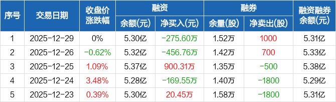 艾为电子:融资净偿还275.6万元,融资余额5.3亿元(12-29)