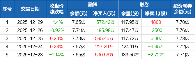 华发股份:融资净偿还572.42万元,融资余额7.65亿元(12-29)