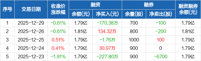 中路股份:融资净偿还170.38万元,融资余额1.79亿元(12-29)
