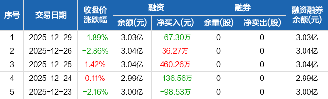 赛微微电:融资净偿还67.3万元,融资余额3.03亿元(12-29)