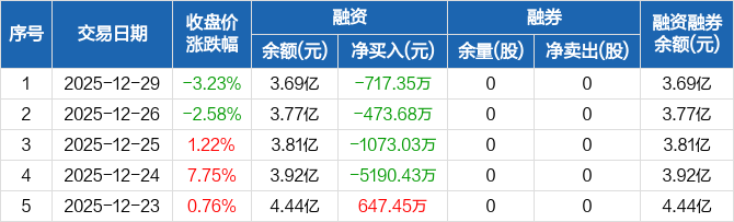 春秋电子:连续4日融资净偿还累计7454.49万元(12-29)