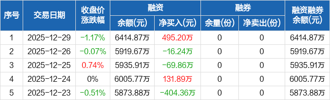医药ETF:融资净买入495.2万元,融资余额6414.87万元(12-29)