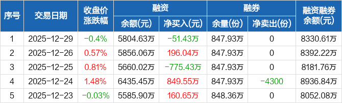 中证500ETF:融资净偿还51.43万元,融资余额5804.63万元(12-29)