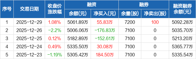 康力源:融资净买入55.83万元,融资余额5061.89万元(12-29)